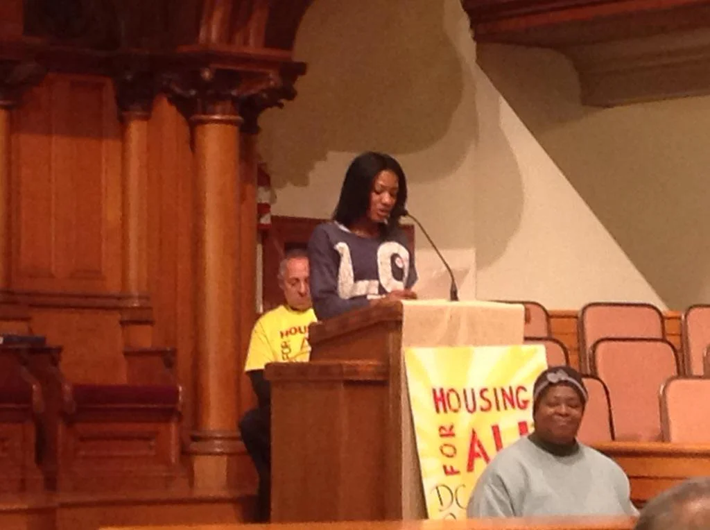 Aniya, a middle school student in Southeast DC, recently won first place in a youth essay contest for her essay on what “home” meant to her. She read her essay out loud at a recent Housing For All rally in the city. Here, Aniya answers some questions from DDG writer Marisa Weidner.