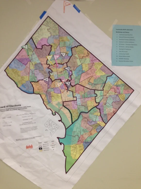 A map displays where Brainfood MVP students served their community/Photo by Holly Leber