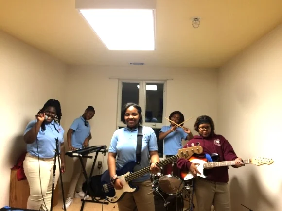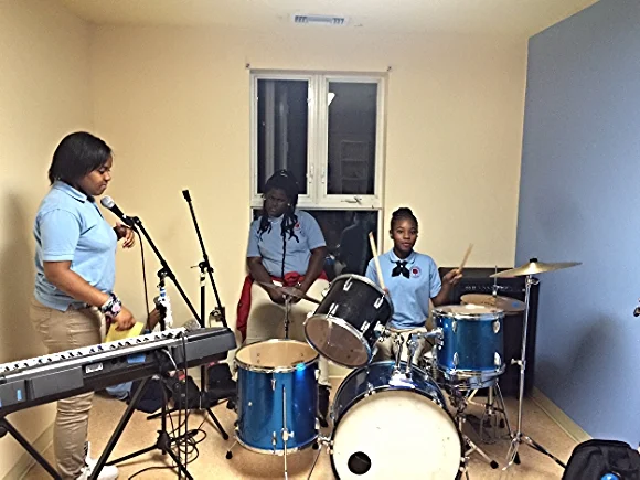 The first day of the program, each girl chooses an instrument and starts learning to play. From there, they’re put into bands that each write a song to perform at the end-of-term showcase. While learning their instruments, the girls learn social skills and meet new friends.